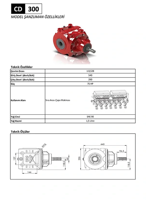 CD 300 Sıra Arası Çapa Makinesi Şanzıman Teknik Özellikleri