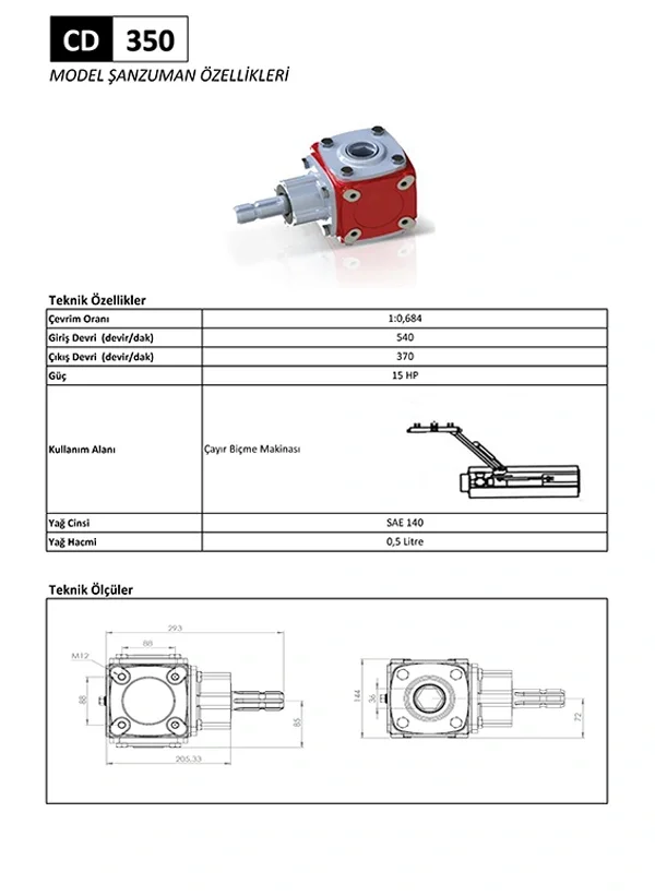 CD 350 Çayır Biçme Makinesi Şanzıman Teknik Özellikleri