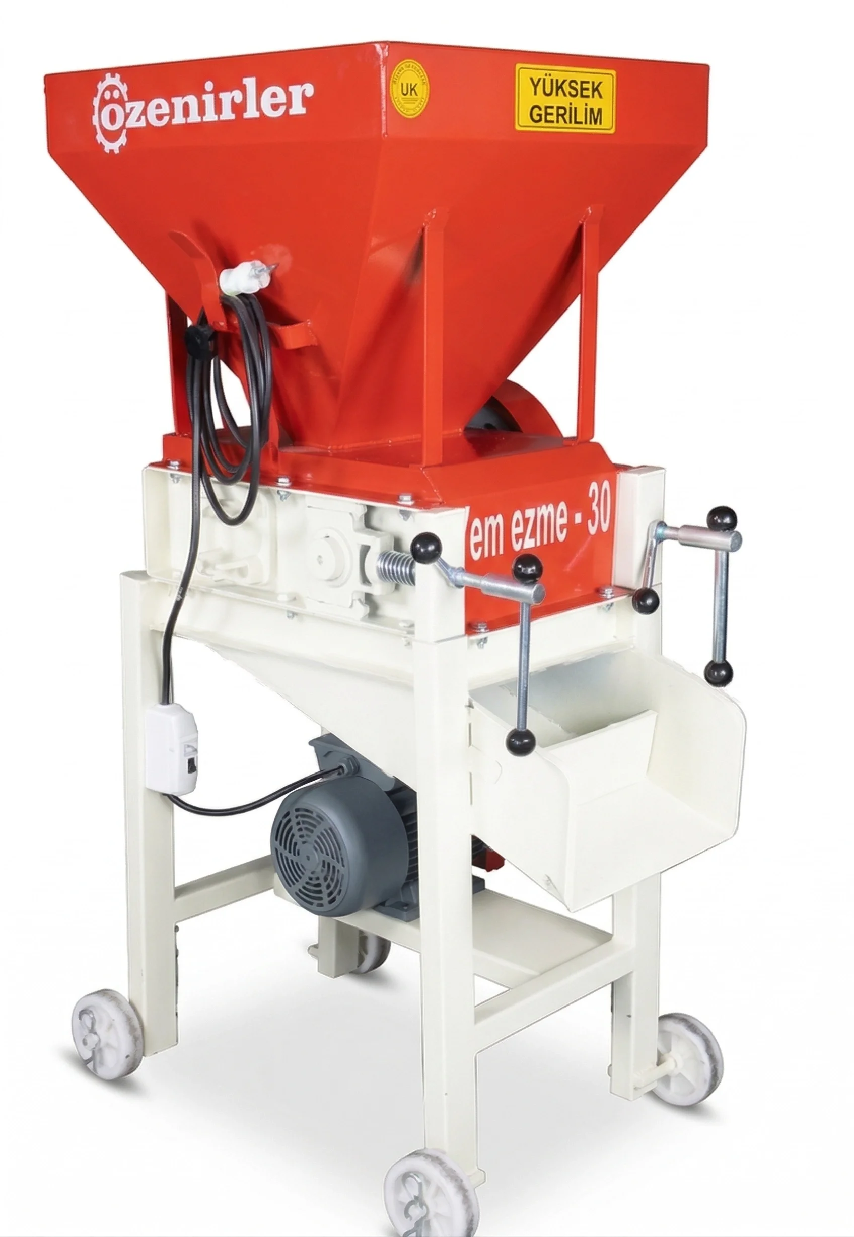Özenirler Yem Ezme Makinesi 30'luk (YE-30), büyükbaş ve küçükbaş işletmelerinde arpa, buğday, mısır gibi temel tahıl ürünlerini en sağlıklı şekilde işlemek için tasarlanmıştır. Gücünü 220V elektrik motorundan (3kw / 4hp) alan bu makine, ev tipi elektrikle bile sorunsuz çalışarak çiftliklerinize büyük kolaylık sağlar. Çift silindirli özel ezme teknolojisi sayesinde yemlerinizi homojen bir şekilde hazırlar.