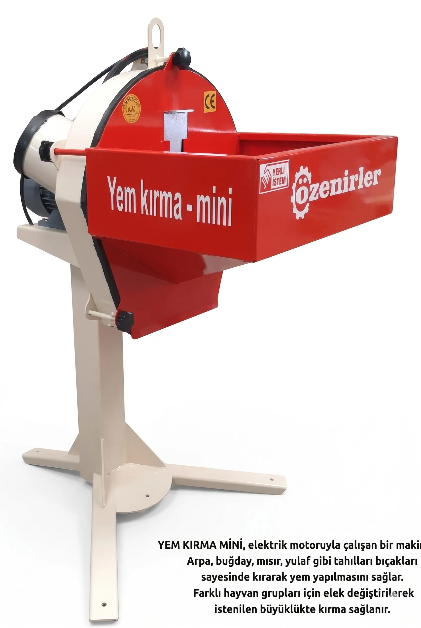 Ev tipi elektrikle (220V) çalışan, taşınabilir ve az yer kaplayan yapısıyla günlük yem kırma ihtiyaçlarınızı en zahmetsiz şekilde karşılar.