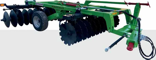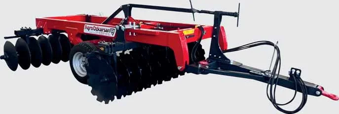 Özkarsan Ağır Tip Pistonlu Goble Diskaro (Offset),anız bozma ve tohum yatağı hazırlama işlemlerinde kullanılmak üzere tasarlanmış yüksek mukavemetli bir ekipmandır. Pistonlu yapısı sayesinde iş ve yol konumuna kolayca alınabilir, ağır şasesi ile sert topraklarda dahi etkili batma sağlar.