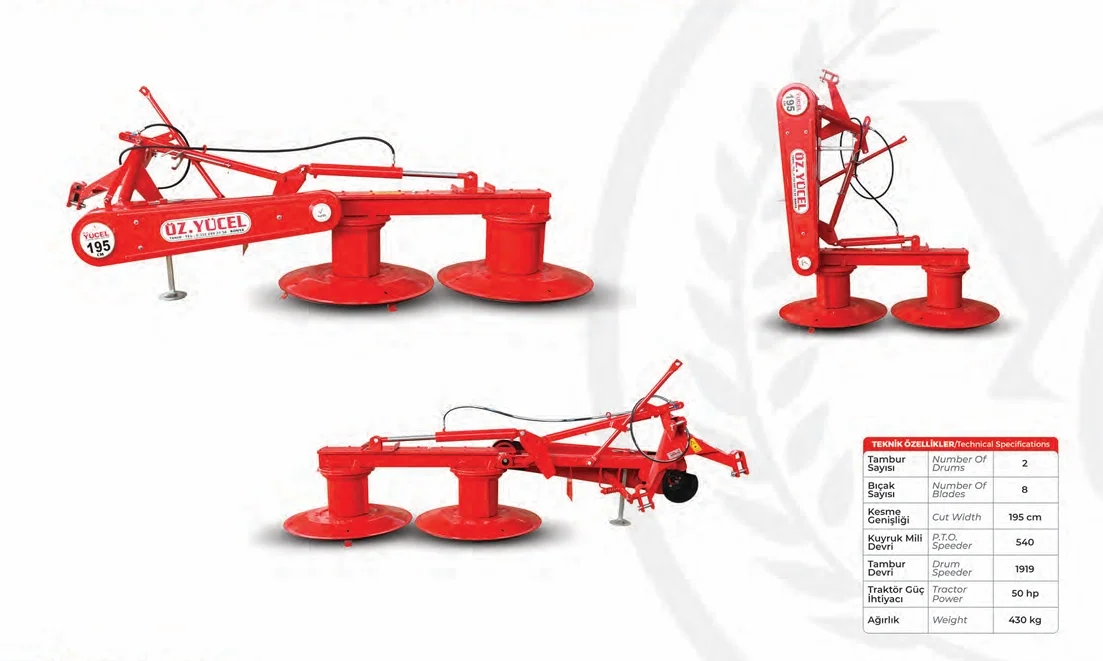 Kaliteli yem hasadı için güç ve konforu bir araya getiren Özyücel 195lik Pistonlu Tamburlu Çayır Biçme Makinesi, tarladaki en güçlü yardımcınızdır.